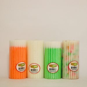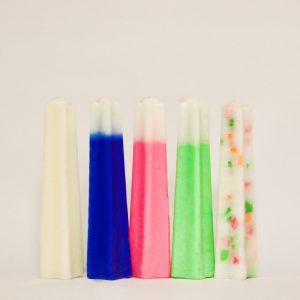 Each candle is colored with polymers that increase the vibrancy of the color, improve opacity and strengthen the wax.